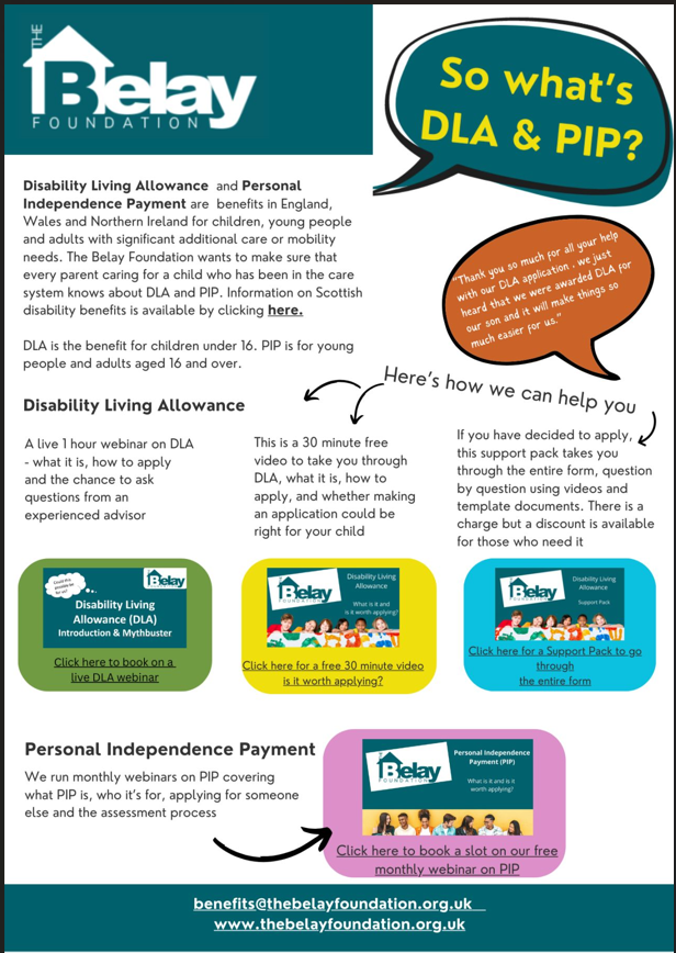 Live 1 hour webinar on the DLA (24th March), what is it, how to apply and the chance to ask questions from an experienced advisor – book your place here. Book here.
